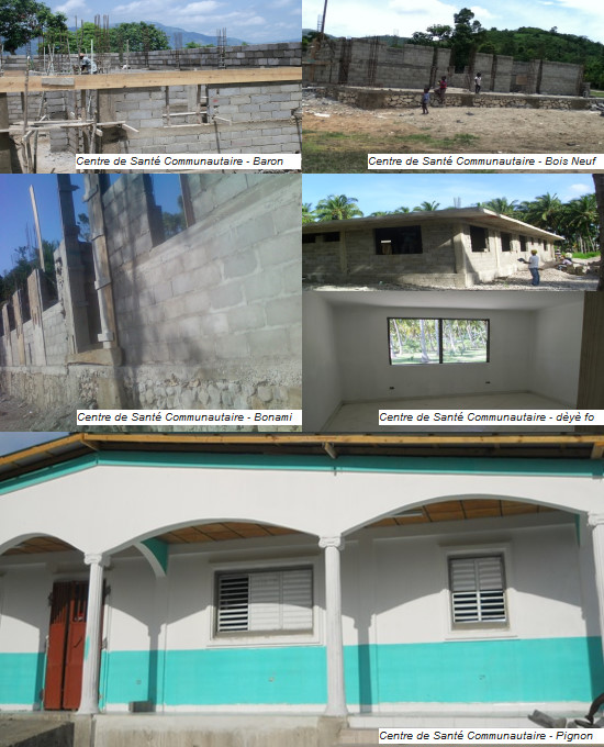 Dans le cadre de l'exécution des « Fonds Communaux », le nouveau Centre de Santé Communautaire de la commune de Pignon, située dans le département du Nord, est maintenant achevé. Située dans l'arrondissement de Saint-Raphaël, Pignon faisait partie de l'une des 140 communes du pays ne disposant pas d'une telle infrastructure. Le Député Nelson Hidson et le maire Dioda Calixte, ont exprimé leur satisfaction face aux efforts continus de l'Administration Martelly en vue de doter le pays d'infrastructures Sanitaires. Selon le Ministre de la Planification et de la Coopération Externe (MPCE), Laurent Lamothe, également Premier Ministre plusieurs constructions de Centres de Santé Communautaires sont en voie d’achèvement à travers le pays dont : La construction d'un Centre de Santé Communautaire dans la commune de Roseaux dans le département de la Grand-Anse dont l'état d'avancement est à plus de 56% ; La construction d'un Centre de Santé Communautaire dans la commune de Baron dans le département du Nord dont l'état d'avancement est à plus de 70% ; La construction du Centre de Santé Communautaire de Bostage dans la Commune de Dondon dans le département du Nord, dont l'état d'avancement est à plus de 70% ; La construction d'un Centre de Santé Communautaire de BONAMI dans la commune de la Grande Rivière du Nord dans le département du Nord dont l'état d'avancement est également à plus de 70% ; La construction du Centre de Santé Communautaire de Bois Neuf à Saint-Raphael dans le département du Nord, dont l'état d'avancement est à 80% ; La construction d'un Centre de Santé Communautaire dans la commune d’Arniquet dans le département du Sud dont l'état d'avancement est à plus de 68% ; La construction du Centre de Santé Communautaire « Dèyè Fò » dans la ville des Cays dans le département du Sud, dont l'état d'avancement est à plus de 90%.