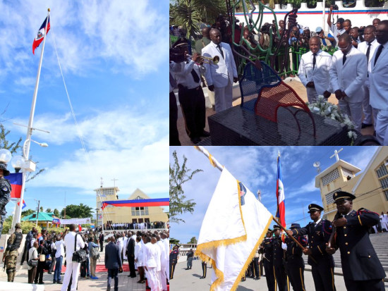 Ce mercredi 18 mai, la ville de l'Arcahaie accueille la célébration du 213e anniversaire de la création du drapeau haïtien, en présence du Chef de l'État provisoire, Jocelerme Privert, accompagné du Premier Ministre Enex Jean-Charles, des ministres, Secrétaires d'État, Directeurs généraux, membres du corps diplomatique, Président des deux chambres, ainsi que diverses personnalité de la vie nationale. Après l'hymne présidentiel, la levée du drapeau, l'hymne national chanté par James Germain, les dépôts de gerbes de fleurs au pied de la statue de Jean-Jacques Dessalines et sur la Place Catherine Flon, la cérémonie religieuse à l'Église St-Pierre de l'Archaie, le Président a.i. Jocelerme Privert a délivré son discours sur le stand officiel. Extraits du discours du Président a.i. Jocelerme Privert : « [...] il s'agit d'un moment où le Chef de l'État en tant que garant de la bonne marche de la République commune se doit d’apporter la parole réconfortante, la parole vivifiante pour alimenter l'âme nationale tout en exhortant les filles et les fils du pays à se hisser à la hauteur de ce passé glorieux. [...] je voudrais inscrire mon intervention au-delà de la transition. J'implore de tous mes vœux que ce 18 mai 2016 marque le début d’une marche effective vers une vraie réappropriation des valeurs patriotiques et Républicaine. [...] Nous devons aujourd'hui poser à cette génération certaine questions : Haïti, Haïti mon pays, votre pays, notre pays est t-il à sa place aujourd'hui 213 ans après la création de ce bicolore nationale ? Avons nous fait tout ce qu'il fallait pour suivre l'idéale Dessalinien ? Allons-nous continuer sur cette pente dangereuse de la division et des querelles, sans montrer notre capacité à construire un projet Nation, fondateur de talent, de bonnes volonté et des énergies dont nous disposons ? Pendant combien de temps encore nous allons laisser nous catégoriser comme l’un des pays le plus pauvre au monde, comme le seul pays le moins avancé de l'Amérique ? Pendant encore combien d'années allons nous continuer à nous retrouver parmi les 10 États les plus corrompus au monde ? Pendant combien de temps encore Haït va avoir un niveau de croissance économique inférieur au niveau de croissance de sa population, ce qui signifie une paupérisation absolue de nos citoyens et de nos concitoyennes ?