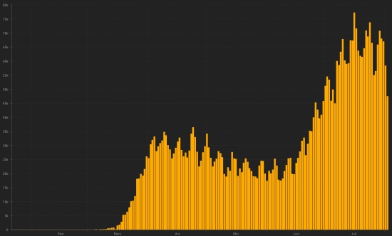 SITUATION MONDIALE : Lundi 3 août 2020, le nombre de personnes contaminées dans le monde par le coronavirus Covid-19 depuis le début de la pandémie (Source officielle), s’élève à 18,093,891 cas confirmés (+234,128 en 24h), la veille (+237,285). Nombre de pays contaminés 188 (inchangé) Bulletin de la veille : https://www.haitilibre.com/article-31440-haiti-covid-19-bulletin-quotidien-2-aout-2020.html Depuis le début de la pandémie 10,700,077 personnes (+135,814 en 24h) ont été guéries du Covid-19 dans le monde, la veille (+205,111). Depuis le début de la pandémie 689,625 personnes (+4,446 en 24h) sont mortes du Covid-19 dans le monde, la veille (+5,014). Le nombre de cas actifs dans le monde (excluant les décès et les guérisons) est actuellement de 6,704,189 cas (+93,868 en 24h), la veille (+27,160) Taux moyen de guérison au monde : 59.14% (-) Taux moyen de mortalité au monde : 3.81% (+) TOP 5 des pays ayant le plus de cas actifs : 1er - USA : 3,044,408 cas (+40,240 en 24h), la veille (+32,386) 2e - Inde : 579,357 cas (+11,627 en 24h), la veille (+1,627) avance d’une place 3e - Brésil : 576,697 cas (+365 en 24h) la veille (+15,176) 4e - Royaume-Unis : 258,589 cas (+736 en 24h), la veille (+697) 5e - Russie : 188,084 cas (+1,872 en 24h), la veille (+1,672) TOP 5 des pays ayant le plus de décès : 1er - USA : 154,860 décès (+411 en 24h), la veille (+1,129) 2e - Brésil : 94,104 décès (+541 en 24h), la veille (+1,088) 3e - Mexico : 47,746 décès (+274 en 24h), la veille (+784) 4e - Royaume-Unis 46,286 décès (+8 en 24h), la veille (+74) 5e - Inde : 38,135 (+771 en 24h), la veille (+853) DIASPORA : États-Unis : Cas depuis le début de l’épidémie : 4,667,957 cas (+47,455 en 24h), la veille (+57,240) Guérisons : 1,468,689 personnes (+6,804 en 24h), la veille (+24,005) Taux national de Guérison : 31.46% (-) Décès : 154,860 décès (+411 en 24h), la veille (+1,129) Cas actifs (moins décès et guérisons) : 3,044,408 cas (+40,240 en 24h), la veille (+32,386) Canada : Cas depuis le début de l’épidémie : 118,768 cas (+245 en 24h ), la veille (+242) Guérisons : 103,201 personnes (+129 en 24h), la veille (+166) Taux national de Guérison : 86.89% (-) Décès : 8,990 décès (+4 en 24h), la veille (+6) Taux national de mortalité : 7.57% (-) Cas actifs : (excluant décès et guérisons) 6,577 cas (+112 en 24h), la veille (+70) France : NOTE : Santé Publique France n’a pas publiée de mise à jour de la situation. Les données ci-dessous sont donc les mêmes que celles de notre bulletin de la veille. Cas confirmés depuis le premier cas : 225,197 (+1,351), précédent (+1,377) Guérisons : 81,870 personnes (+214) , précédent (+167) Taux national de Guérison : 36.35% (-) Décès : 30,245 décès (+11), précédent (+16) Cas actifs : (excluant décès et guérisons) 113,082 (+1,127), précédent (+1,194) Amérique latine et Caraïbe cas actifs : Brésil : 576,697 cas (+365 en 24h) la veille (+15,176) Colombie : 139,762 cas (+4,619 en 24h), la veille (+4,127) Pérou : 115,049 cas (17,413 en 24h) en 24h), la veille (-6,920) Argentine : 109,245 cas (+2,797 en 24h) Mexico : 48,772 cas (-3,082 en 24h), la veille (+ 1,020) République Dominicaine : 32,8321 cas (+85 en 24h), la veille (+717) Panama : 24,944 (+91 en 24h), la veille (+184) Chili : 17,712 cas (+94 en 24h), la veille (-265) Guyane française : 6,742 cas (mise à jour non disponible), la veille (+58) Haïti : 2,705 cas (+8 en 24h), précédent (+40) Bahamas : 543 cas (+49), la veille (+25) Martinique : 159 cas (mise à jour non disponible) Cuba : 190 cas (+11 en 24h), la veille (+13) Guadeloupe : 167 cas (mise à jour non disponible) Jamaïque : 139 cas (+9), la veille (-12) HAÏTI : Situation épidémiologique : Selon le Ministère de la Santé Publique, 8 nouveaux cas de Covid-19 auraient été confirmés en Haïti en 24h la veille (+44), pour un total de 7,476 cas sur l’ensemble du territoire national (41.3% de femmes et 58.7% d’hommes) depuis le premier cas (19 mars 2020 https://www.haitilibre.com/article-30319-haiti-sante-origine-des-2-premiers-cas-de-covid-19-en-haiti.html ). Décès : (inchangé en 24h), total national 165. Guérisons : : 4,606 personnes (inchangé en 48h), précédent (+139 en 72h) Taux de guérison : 61.61% (-) Cas actifs : (moins décès et guérisons) 2,705 cas (+8 en 24h), précédent (+40) Cas importés : 152 cas depuis la réouverture des aéroports et +43 depuis le dernier bilan datant du 9 juillet (109) https://www.haitilibre.com/article-31348-haiti-flash-152-cas-importes-depuis-la-reouverture-des-aeroports.html (actualisation non disponible) Cas suspects investigués depuis le 19 mars : 18,668 cas (+128 en 24h), précédent (+100) Cas testés depuis le début de la pandémie : 17,961 (+122 en date du 31juillet) Personnes hospitalisées actuellement : (information non disponible) Personnes en soins intensifs actuellement : (information non disponible) Personnes en quarantaine à domicile actuellement : (information non disponible) Cas confirmés par département : Ouest : 5,296 cas (+3), la veille : (+17) Artibonite : 433 cas (+3), la veille : (+8) Centre : 370 cas (+1), la veille : (+1) Nord : 345 cas (inchangé), la veille : (+4) Sud-Est : 213 cas (inchangé), la veille : (+2) Sud : 206 cas (inchangé), la veille : (+1) Nord-Est : 175 cas (+1), la veille : (+9) Nord-Ouest : 167 cas (inchangé), la veille : (+2) Grand’Anse : 150 cas (Inchangé) Nippes : 121 cas (Inchangé) Localisation des cas : Ouest : 5,296 cas (+3) Delmas : 1,290 cas (inchangé), la veille : (+5) Port-au-Prince : 1,087 cas (inchangé), la veille : (+2) Pétion-ville : 784 cas (inchangé), la veille : (+1) Tabarre : 650 cas (inchangé), la veille : (+3) Croix-des-Bouquets : 503 cas (inchangé), la veille : (+2) Carrefour : 403 cas (inchangé), la veille : (+1) Petit-Goâve : 140 cas (inchangé), la veille : (+2) Cité Soleil : 90 cas (inchangé) Cabaret : 72 cas (inchangé) Léogâne : 64