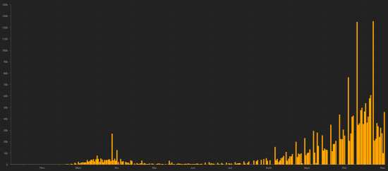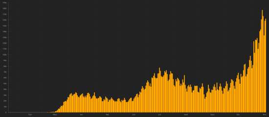 SITUATION MONDIALE : Mercredi 18 novembre 2020, le nombre de personnes contaminées dans le monde par le coronavirus Covid-19 depuis le début de la pandémie (Source officielle), s’élève à 55,695,116 (+586,965 en 24h), la veille (+656,347), Nombre de pays contaminés 191 (inchangé) Bulletin de la veille : https://www.haitilibre.com/article-32314-haiti-diaspora-covid-19-bulletin-quotidien-242.html Depuis le début de la pandémie 35,848,321 personnes ont été guéries du Covid-19 dans le monde (+431,55 en 24h), la veille (+397,914) Depuis le début de la pandémie 1,339,820 personnes sont mortes du Covid-19 dans le monde (+11,135 en 24h), la veille (+10,652) Le nombre de cas actifs dans le monde (excluant les décès et les guérisons) est actuellement de 18,506,975 cas (+144,275 en 24h), la veille (+247,781) Monde : Nombre de cas confirmés quotidiens