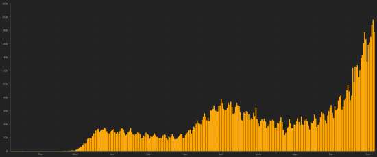 SITUATION MONDIALE : Dimanche 22 novembre 2020, le nombre de personnes contaminées dans le monde par le coronavirus Covid-19 depuis le début de la pandémie (Source officielle), s’élève à 58,228,713 (+569,208 en 24h), la veille (+668,204), Nombre de pays contaminés 191 (inchangé) Bulletin de la veille : https://www.haitilibre.com/article-32346-haiti-diaspora-covid-19-bulletin-quotidien-246.html Depuis le début de la pandémie 37,287,259 personnes ont été guéries du Covid-19 dans le monde (+330,994 en 24h), la veille (+363,249) Depuis le début de la pandémie 1,381,822 personnes sont mortes du Covid-19 dans le monde (+7,875 en 24h), la veille (+11,756) Le nombre de cas actifs dans le monde (excluant les décès et les guérisons) est actuellement de 19,559,632 cas (+230,339 en 24h), la veille (+293,199) Monde : Nombre de cas confirmés quotidiens