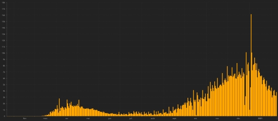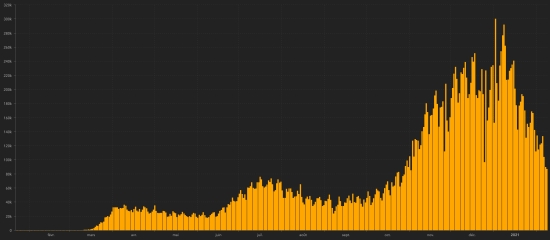 SITUATION MONDIALE : Mardi 9 février 2021, le nombre de personnes contaminées dans le monde par le coronavirus Covid-19 depuis le début de la pandémie (Source officielle), s’élève à 106,555,041 cas (+348,047), la veille (+377,704). Nombre de pays contaminés 192 (inchangé). Bulletin de la veille : https://www.haitilibre.com/article-32972-haiti-diaspora-covid-19-bulletin-quotidien-325.html Depuis le début de la pandémie 59,485,424 personnes ont été guéries du Covid-19 dans le monde (+259,383), la veille (+297,332) Depuis le début de la pandémie 2,327,482 personnes sont mortes du Covid-19 dans le monde (+9,194 en 24h), la veille (+8,051) Le nombre de cas actifs (moins décès et guérisons) dans le monde est actuellement de 44,741,135 (+79,470 en 24h), la veille (+72,321) Taux moyen de guérison au monde : 55.83% (+) Taux moyen de mortalité au monde : 2,18% (=) Monde : Nombre de cas confirmés quotidiens :