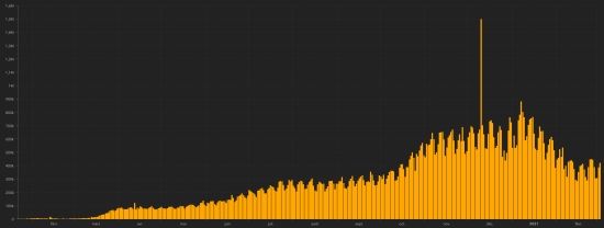 Jeudi 4 mars, le nombre de personnes contaminées dans le monde par le coronavirus Covid-19 depuis le début de la pandémie (Source officielle), s’élève à 115,226,491 cas (+343,500 en 24h), la veille (760,948 en 48h). Nombre de pays contaminés 192 (inchangé) Bulletin de la veille : https://www.haitilibre.com/article-33152-haiti-diaspora-covid-19-bulletin-quotidien-348.html Depuis le début de la pandémie 65,155,265 personnes ont été guéries du Covid-19 dans le monde (+160,641 en 24h), la veille (+552,393 en 48h) Depuis le début de la pandémie 2,560,287 personnes sont mortes du Covid-19 dans le monde (+8,676 en 24h), la veille (+20,122 en 48h) Le nombre de cas actifs (moins décès et guérisons) dans le monde est actuellement de 47,510,939 (+174,183 en 24h), la veille (+188,433 en 48h) Taux moyen de guérison au monde : 56.55% (-) Taux moyen de mortalité au monde : 2,22% (=) Monde : Nombre de cas confirmés quotidiens :