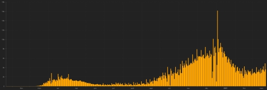 SITUATION MONDIALE : *Mercredi 24 mars 2021, le nombre de personnes contaminées dans le monde par le coronavirus Covid-19 depuis le début de la pandémie (Source officielle), s’élève à 124,859,833 (+521,143 en 24h), la veille (+436,018) Nombre de pays contaminés 192 (inchangé) Bulletin la veille : https://www.haitilibre.com/article-33309-haiti-diaspora-covid-19-bulletin-quotidien-368.html *Depuis le début de la pandémie 100,880,783 personnes ont été guéries du Covid-19 dans le monde (+555,667 en 24h), la veille (+504,286) *Depuis le début de la pandémie 2,747,609 personnes sont mortes du Covid-19 dans le monde (+10,888 en 24h), la veille (+8,087) *Le nombre de cas actifs (moins décès et guérisons) dans le monde est actuellement de 21,231,441 cas (-45,412 en 24h), la veille(-76,355) Taux moyen de guérison au monde : 80,79% (+) Taux moyen de mortalité au monde : 2,20% (=) Monde : Nombre de cas confirmés quotidiens :