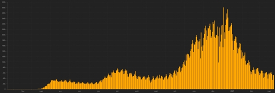 Vaccination : 475,61 millions de doses de vaccin injectées (+17,48 millions de doses injectées en 24h (mis à jour du 23 mars 2021 dernières données disponibles). TOP 5 des pays ayant le plus de cas actifs : (moins décès et guérisons) 1er - USA : 7,338,963 cas, (-141,603 en 24h), la veille (-41,757) 2e - France : 3,951,975 cas (+12,769 en 24h), la veille (+14,519) 3e* - Brésil : 1,236,114 cas (-11,825), la veille (+6,246) 4e* - Belgique : 764,320 cas (+3,425 en 24h), la veille (+2,136) 5e*- Italie : 560,654 cas (-2,413 en 24h), la veille (-8,605) TOP 5 des pays ayant le plus de décès : 1er - USA : 543,843 décès (+894 en 24h), la veille (+590) 2e* - Brésil : 298,843 décès (+3,158 en 24h), la veille (+1,570) 3e* - Mexico : 199,048 décès (+809 en 24h), la veille (+203) 4e* - Inde : 160,477 décès (+277 en 24h), la veille (+197) 5e* - Royaume-uni : 126,284 décès, (+112 en 24h), la veille (+17) TOP 5 des pays ayant le plus grand nombre de guérisons : 1er - USA : 22,039,585 guérisons (+193,582 en 24h), taux de guérison 73.65% (+) 2e* - Inde : 11,205,160 guérisons (+23,907 en 24h), taux de guérison 95,49% (-) 3e* - Brésil : 10,601,658 guérisons (+93,663 en 24h), taux de guérison 87,35% (+) 4e* - Russie : 4,098,400 guérisons (+10,355 en 24h), taux de guérison 91,41% (+) 5e* - Grande Bretagne : 3,712,658 guérison (+18,503 en 24h), taux de guérison 86,19% (+) DIASPORA : USA : Cas depuis le premier cas (9 mars 2020) : 29,922,391 cas (+52,873 en 24h), la veille (+50,584) *Guérisons : 22,039,585 guérisons (+193,582 en 24h), la veille (+91,751) Taux national de Guérison : 73,65% (+) Décès : 543,843 décès (+894 en 24h), la veille (+590) Cas actifs (moins décès et guérisons) : 7,338,963 cas, (-141,603 en 24h), la veille (-41,757) Canada : Cas depuis le début de l’épidémie (25 janvier 2020) : 947,489 cas (+3,569 en 24h), la veille (+4,863) Guérisons : 889,247 personnes (+3,138 en 24h), la veille (+4,083) Taux national de Guérison : 93,85% (-) Décès : 22,715 décès (+20 en 24h), la veille (+39) Taux national de mortalité : 2,39% (-) Cas actifs : (excluant décès et guérisons) 35,527 (+411 en 24h), la veille (+741) Vaccination : 4,22 millions de doses de vaccin injectées (+120,000 doses injectées en 24h mis à jour du 23 mars 2021 dernières données disponibles), depuis le 14 décembre 2020 date de la première injection aux Canada. Canada : Nombre de cas confirmés quotidiens