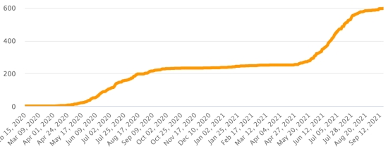 Vaccination : 5,88 millards de doses de vaccin injectées (+20 millions de doses injectées en 24h. Mise à jour 17 septembre 2021 (dernières données disponibles). HAÏTI : Situation épidémiologique : Si l’on en croit le Ministère de la Santé Publique, +8 nouveaux cas en 24h de Covid-19 et de ses variants auraient été confirmés en Haïti le 13 septembre 2021 (dernières données partielles disponibles) pour un total de 21,338 cas confirmés sur l’ensemble du territoire national (46.3% de femmes et 53.7% hommes), depuis le premier cas (19 mars 2020 https://www.haitilibre.com/article-30319-haiti-sante-origine-des-2-premiers-cas-de-covid-19-en-haiti.html ). Précédente mise à jour (+12 cas le 12 septembre). Guérisons : 19,166 (+51 en 24h) Taux de guérison : 89,82% (+) Décès : 597 décès +1 en 24h (Dept. Nord-Ouest) Taux de mortalité : 2,79% (=) Haïti : Tendance des décès :