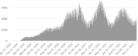*Cas depuis le premier cas (9 mars 2020) : 46,597,003 cas (+99,284 en 24h), la veille (+80,194)