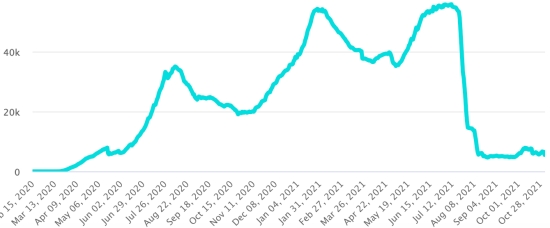 Vaccination : 423,94 millions de doses de vaccin injectées depuis le 14 décembre 2020 date de la première injection aux États-Unis (930,000 doses injectées en 24h). Mise à jour 2 novembre 2021 (dernières données disponibles). RÉPUBLIQUE DOMINICAINE : Cas confirmés depuis le 1er mars 2020 : 383,317 cas (+841 en 24h) la veille (+809). Premier cas (1er mars 2020) https://www.haitilibre.com/article-30165-haiti-flash-premier-cas-de-covid-19-en-republique-dominicaine.html Guérisons : 373,692 guérisons depuis le 1er mars (+1,884 en 24h), la veille (+708) Taux national de Guérison : 97,48% (+) Décès : 4,138 décès (+5 en 24h), la veille (+3) Taux de mortalité : 1,07% (-) Taux de positivité sur 4 semaines épidémiologiques : 11,9% (+) Cas actifs : (excluant décès et guérisons) 5,487 cas (-1,048 en 24h) la veille (+98) TOP 5 des provinces ayant le plus de nouveaux cas les dernières 24h : District Nacional : +162 cas (+) Santo Domingo : +155 cas (+) Santiago : +98 cas (-) Puerto Plata : 77 cas Santiago Rodriguez : +49 cas République Dominicaine : Tendance cas actifs : (moins guérisons et décès)