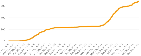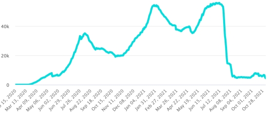 Vaccination : 7,19 millards de doses de vaccin injectées (+40 millions de doses injectées en 24h. Mise à jour 4 novembre 2021 (dernières données disponibles). HAÏTI : Situation épidémiologique : Selon le Ministère de la Santé Publique, +28 nouveaux cas en 24h de Covid-19 et de ses variants auraient été confirmés en Haïti les 28 octobre 2021 (dernières données partielles disponibles) pour un total de 24,032 cas confirmés sur l’ensemble du territoire national (47% de femmes et 53% hommes), depuis le premier cas (19 mars 2020 https://www.haitilibre.com/article-30319-haiti-sante-origine-des-2-premiers-cas-de-covid-19-en-haiti.html ). Précédente mise à jour (+23 cas le 27 octobre). Guérisons : 20,431 (+57 en 24h) Taux de guérison : 85,01% (+) Décès : 679 décès +2 en 24h (Sud +2) Taux de mortalité : 2,81% (-) Haïti : Tendance des décès :