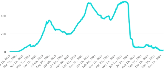 Vaccination : 500,22 millions de doses de vaccin injectées depuis le 14 décembre 2020 date de la première injection aux États-Unis (1,21 millions de doses injectées en 24h). Mise à jour 23 décembre 2021 (dernières données disponibles). RÉPUBLIQUE DOMINICAINE : Cas confirmés depuis le 1er mars 2020 : 412,685 cas (+422 en 24h) la veille (+241) . Premier cas (1er mars 2020) https://www.haitilibre.com/article-30165-haiti-flash-premier-cas-de-covid-19-en-republique-dominicaine.html Guérisons : 406,692 guérisons depuis le 1er mars (+179 en 24h), la veille (+4) Taux national de Guérison : 98,54% (-) Décès : 4,228 décès (+5 en 24h), la veille (+0) Taux de mortalité : 1,02% (=) Taux de positivité sur 4 semaines épidémiologiques : 4,65% (+) Cas actifs : (excluant décès et guérisons) 1,765 cas (+238 en 24h) la veille (+237) République Dominicaine : Tendance cas actifs : (moins guérisons et décès)