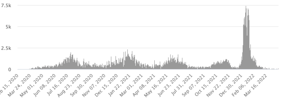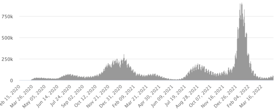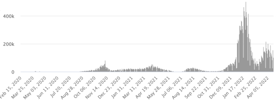 Vaccination : 142,63 millions de doses de vaccin injectées depuis le 27 décembre 2020, date de la première injection en France (+50,000 doses injectées en 24h). Mise à jour 23 avril 2022 (dernières données disponibles)