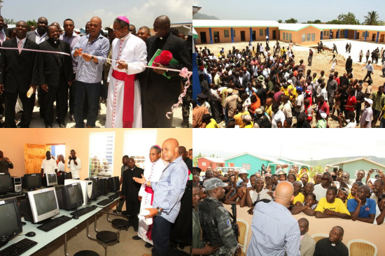 À l’occasion de la Sainte-Anne, le Président Michel Martelly, s’est rendu jeudi 26 Juillet, à Anse-à-Veau, [département des Nippes], pour visiter un village construit au profit des victimes du 12 Janvier 2010 et inaugurer l’École Polytechnique Sainte-Anne. Le Chef de l’État, à sa descente d’hélicoptère, a été accueilli par M. Alex Tropnaz le Délégué du Département, accompagné de plusieurs personnalités avec qui, il s’est rendu à pieds à la Cathédrale Sainte-Anne où l’attendaient sur le parvis, Mgr Pierre-André Dumas, des membres du Clergé catholique, des élus locaux ainsi que des représentants de la Société Civile. Au cours de son intervention, Mgr Dumas a souligné le fait, que le Président Martelly était le premier Chef d’État à visiter officiellement Anse-à-Veau et à manifester un intérêt réel au développement de la région. Le Chef de l’Etat s’est ensuite rendu au village construit par « Food for The Poor », où il a été accueilli entre autres, par Daniel Gérard Rouzier, Représentant de cette organisation, les Sénateurs Jocelerme Privert et William Jeanty, le Maire Victor Gramond, les Députés Wilner Guervil et Frantz Robert Mondé. Ce village d’une soixantaine de maisons, a été construit pour abriter les familles déplacées et les victimes des intempéries du département des Nippes. Le Président a félicité M. Daniel Gérard Rouzier et Mgr Pierre André Dumas pour leur engagement personnel et pour le travail accompli par « Food for the Poor » et le diocèse d’Anse-à-Veau et de Miragoâne, non seulement dans la construction d’un village de 60 maisons, mais aussi pour y avoir ajouté une école « preuve d’une vision progressiste et d’une volonté réelle de développement ».