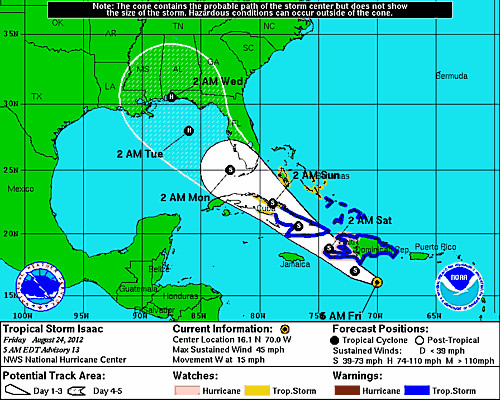 Haïti - Environnement : ISAAC à 370km de Port-au-Prince - Les banques ferment à midi 24/08/2012 07:11:21