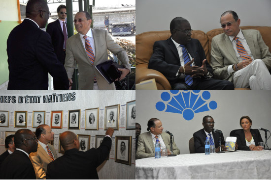 Jeudi, à l’aéroport International Toussaint Louverture, Jean Mario Dupuy, le Ministre de la Culture a accueilli son homologue dominicain Jose Antonio Rodriguez qui était accompagné entre autres du Dr. Carlos Salcedo, son Chef de cabinet, et de l’artiste dominicain très connu Jordan Marmor. Notez que c'est la première fois, qu'un Ministre dominicain de la Culture se rend en Haïti. Un premier échange entre les deux hommes a permis de dégager une convergence de vue sur plusieurs domaines, notamment l’introduction de la dimension économique de la culture dans la vision politique de leur gouvernement respectif. La séance de travail s’est poursuivi dans les bureaux du Ministère de la Culture, avant que le Ministre Dupuy, invite la délégation dominicaine à visiter le Musée du Panthéon National Haïtien (MUPANAH), où se tient une exposition des œuvres de Saint-Soleil, qui ouvrira au public a compter du 2 février jusqu'au 25 février 2013. Après cette visite, les deux Ministres ont donné un point de presse conjoint et annoncé l’exploration de plusieurs pistes de coopération, et la préparation d’un accord-cadre de coopération culturelle entre les deux pays.