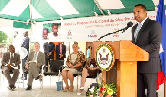 La cérémonie s’est déroulée au complexe administratif de la ville en présence des principaux acteurs du projet dont : Charles Jean Jacques, le Ministre des Affaires Sociales et du Travail, Mme Pamela White, l’Ambassadrice américaine en Haïti, John Groake, le Directeur de l’Agence Américaine pour le Développement International (USAID), Mme Hélène Gayle, la Directrice Exécutive de CARE, Fréderic Roberts, Représentant d’Action Contre la Faim (ACF) et Monsieur George Heymell, Représentant du Programme Alimentaire Mondial (PAM). HL/ HaïtiLibre