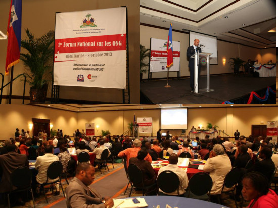 Mardi au Karibe Convention Center, s’est tenu le Premier Forum National sur les Organisations Non Gouvernementales d’Aide au Développement, autour du thème « Réflexions vers un partenariat amélioré Etat-ONG ». Près de 300 représentant d’ONG sur les 550 reconnues en Haïti se sont réunis pour l’occasion. La place et le rôle des ONG dans le mécanisme de coordination gouvernementale, ont été les thèmes débattus en séance plénière. Dans son discours, le Premier Ministre, Laurent Lamothe à déclaré que ce Forum « doit nous donner l'opportunité d'un dialogue constructif à la recherche de solution et de mécanismes pour un partenariat durable et des résultats incontestables sur le rythme et la qualité du développement national. » appelant les ONG a coordonner leurs actions dans un partenariat avec l’État et à agir dans le cadre du Plan stratégique de développement d'Haïti. « Nous n'avons rien contre elles, mais nous voulons savoir ce qu'elles font et s'assurer que ce qu'elles font, entre dans le cadre des priorités du gouvernement [...] l'ONG ne peut pas être en compétition avec l'État haïtien sur les financements des projets, » demandant à ces organisations, d’avoir de la transparence dans leurs actions.
