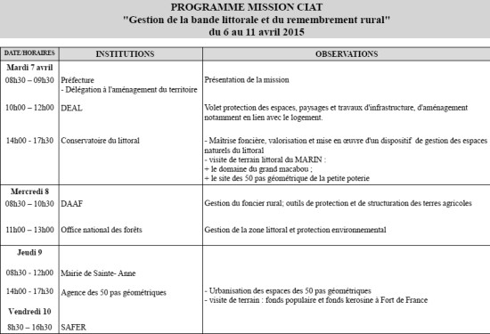As part of the administrative cooperation initiated in 2012 with the Haitian government for its territorial reform program, Martinique will receive from April 7 to 10, 2015 a delegation of Haitian experts on the issue of coastal management and rural consolidation in order to exchange and refining the expertises. Moreover, the Martinique will also welcome the attaché of the Embassy of France in Haiti around issues of development and health. Haitian mission program :
