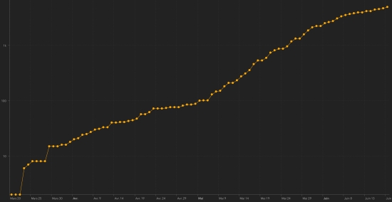 * Note : These 2 graphs are less than the reality, the Haitian authorities having "omitted" 6 times to update the data. Cases confirmed by department : West: 3,837 cases (+128), the day before (+122) Artibonite: 229 cases (+5) Center: 166 cases (+8), the day before (+6) North: 151 cases (+21) South: 110 cases (+27) Southeast: 109 cases (+9) Grand’Anse: 90 cases (+7) North West: 87 cases (+3) North East: 69 cases (+9) Nippes: 68 cases (+11) Location of cases : West : 3,837 cases (+128) Delmas : 963 cases (+33), the day before (+25) Port-au-Prince : 873 cases (+22), the day before (+14) Pétion-ville : 613 cases (+20), the day before (+21) Tabarre : 485 cases (+9), the day before (+16) Croix-des-Bouquets : 325 cases (+11), the day before (+31) Carrefour : 297 cases (+13), the day before (+4) Petit-Goâve : 67 cases (+10) Cité Soleil : 64 cases (+1), the day before (+1) Kenskoff : 41 case (+4), the day before (+1) Léogâne : 35 cases (+3), the day before (+6) Gressier 24 cases (+1), the day before (+1) Cabaret : 19 cases (+1), the day before (+1) Archaie : 12 cases (unchanged), the day before (+1) Ganthier : 6 cases (unchanged) Anse à Galet : 6 cases (unchanged) Cornillon : 3 cases (unchanged) Grand Goâve : 3 cases (unchanged) Thomazeau : 1 case (unchanged) Artibonite : 229 cases (+5) Saint Marc : 100 cases (unchanged) Gonaïves : 64 cases (+4) Verettes : 31 case (+1) L’Estère : 9 cases (unchanged) Marchand Dessalines : 7 cases (unchanged) Petite Rivière de l’Artibonite : 5 cases (unchanged) Saint Michel : 4 cases (unchanged) Ennery : 3 cases (unchanged) Anse Rouge : 2 cases (unchanged) Gros Morne : 1cases (unchanged) Desdunes : 1 case (unchanged) Grande Saline : 1 case (unchanged) Marmelade : 1 case (unchanged) Center : 166 cases (+8) Mirebalais : 72 cases (unchanged), the day before (+4) Hinche : 64 cases (+5) Boucan Carré : 13 cases (+2) Lascaobas : 8 cases (unchanged), the day before (+2) Maissade : 2 cases (unchanged) Belladère : 2 cases (unchanged) Savanette : 2 cases (+1) Cerca la Source : 1 (unchanged) Saut-d’Eau 1 case (unchanged) Thomonde : 1 case (unchanged) North : 151 (+21) Cap Haïtien : 101 case (+17) Limbé : 11 case (unchanged) Grande Rivière du Nord : 9 cases (unchanged) Plaine du Nord : 6 cases (+1) Limonade : 5 cases (+1) Plaisance du Nord : 4 cases (unchanged) Milot : 4 cases (unchanged) Acul du Nord : 4 cases (+1) Quartier Morin : 2 (unchanged) Borgne : 2 cases (+1) Pilate : 1 case unchanged Pignon : 1 case (unchanged) Port Margot : 1 case (unchanged) South : 110 (+27) Cayes : 81 case (+20) Aquin : 10 cases (+3) Torbeck : 5 cases (+2) Port à Piment : 2 cases (+1) Chantal : 2 cases (unchanged) Chardonnières : 2 cases (unchanged) St Jean du Sud : 1 (+1) Camp-Perrin : 1 case (unchanged) Cavaillon 1 case (unchanged) Coteaux : 1 case (unchanged) Île-à Vache : 1 case (unchanged) Les Anglais : 1 case (unchanged) Port-Salut : 1 case (unchanged) Saint-Louis du Sud : 1 case (unchanged) South-East : 109 cases (+9) Jacmel : 88 cases (+8), the day before (+13) Vallée de Jacmel : 6 cases (unchanged) Côte-de-Fer : 5 cases (unchanged) Thiotte : 3 cases (unchanged) Bainet : 2 cases (+1) Belle Anse : 2 cases (unchanged) Marigot : 2 cases (unchanged) Cayes Jacmel : 1 (unchanged) Grand'Anse : 90 cases (+7) Jérémie : 76 cases (+4) Chambellan : 7 cases (unchanged) Anse d’Hainault : 3 (+3) Bonbon : 1 case (unchanged) Moron : 1 case (unchanged) Roseaux : 1 case (unchanged) Pestel : 1 case (unchanged) North-West : 87 cases (+3) Port-de-Paix : 65 cases (+2) Saint-louis du Nord : 6 cases (+1) Môle Saint-Nicolas : 5 cases (unchanged) Jean Rabel : 3 cases (unchanged) Chansolme : 3 cases (unchanged) Bombardopolis : 2 cases (unchanged) La Tortue : 1 case (unchanged) Anse-à-Foleur : 1 case (unchanged) North-East : 69 cases (+9) Ouanaminthe : 23 cases (+1) Caracol 16 cases (+8) Fort Liberté : 15 cases (unchanged) Trou du Nord : 9 cases (unchanged) Carice 1 case (unchanged) Terrier Rouge : 1 case (unchanged) Nippes : 68 cases (+11) Miragoâne : 28 cases (+8) Fond des Nègres : 9 cases (unchanged) Baradères : 7 cases (+1) Plaisance du Sud : 5 cases (+1) Anse à Veau 5 cases (unchanged) Petite Riviere de Nippes : 5 cases (unchanged) L’Asile : 4 cases (unchanged) Paillant : 2 cases (+1) Arnaud : 1 case (unchanged) Grand Boucan : 1 (unchanged) Petit Trou de Nippes 1 case (unchanged) Distribution of cases by age group : 0-9 years: 120 (+8) 10-19 years: 139 (+7) 20-29 years: 909 (+49) 30-39 years: 1,521 (+53) 40-49 years: 958 (+42) 50-59 years: 608 (+32) 60-69 years: 420 (+27) 70 and over: 240 (+9) Distribution of deaths by age group (84) : 0-9 years: 2 deaths (unchanged) 10-19 years: 1 death (unchanged) 20-29 years: 4 deaths (unchanged) 30-39 years: 4 deaths (unchanged) 40-49 years: 15 deaths (unchanged), the day before (+1) 50-59 years: 18 deaths (+1) 60-69 years: 14 deaths (+1), the day before (+1) 70 and over: 26 deaths (unchanged) Healings :: 24 people healed (information not communicated by the Ministry since May 31, 2020) National Healing Rate : 0.0049% (-) Death : 84 deaths (+2) Mortality rate : 1.71% (-) UNITED STATES : Epidemiological situation : United States : Cases since the start of the epidemic : 2,191,200 cases (+27,910 in 24 hours), the day before (+25,559) Healings : 599,115 people (+6,924 in 24h), the day before (+8,688) National Healing Rate : 27.34% (-) Death : 118,435 deaths (+718 in 24 hours), the day before (+754) Active cases (less death and recovery): 1,473,650 cases (+20,268 in 24 hours), the day before (+16,117) Tests : 25,403,498 people were tested (+ 465,621 in 24 hours), the day before (+488,570). New York City : Cases since the start of the epidemic : 211,260 cases (+ 319in 24h), the day before (+350) Death : 22,199 deaths (+28 in 24 hours), the day before (+26) Miami Dade (FL) : Cases since the start of the epidemic : 23,854 cases (+581 in 24 hours), the day before (+532) Death : 859 deaths (+9 in 24 hours), the day before (+3) Florida : Cases