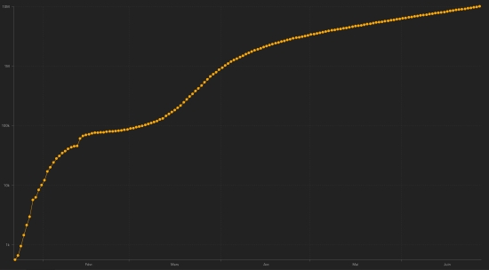 GLOBAL SITUATION : Sunday, June 28, 2020, the number of people infected worldwide with the Covid-19 coronavirus since the start of the pandemic (Official source), amounted to 10,012,244 confirmed (+ 174,039 cases in 24 hours) , the day before: (+194,206). Number of contaminated countries 188 (unchanged) Bulletin from the day before : https://www.haitilibre.com/en/news-31137-haiti-covid-19-daily-report-june-27-2020.html Since the start of the pandemic 5,077,700 people have been cured of Covid-19 worldwide (+104,358 in 24 hours), the day before (+107,780) Since the start of the pandemic 499,486 people have died of Covid-19 worldwide (+4.407 in 24h), the day before (+5.024) The number of active cases worldwide (excluding death and recovery) is currently 4,435,058 cases (+65,274) in 24 hours (the day before: +81,402) Average cure rate in the world : 50.71% (+) Average mortality rate in the world : 4.99% (-) Chart: daily confirmed cases