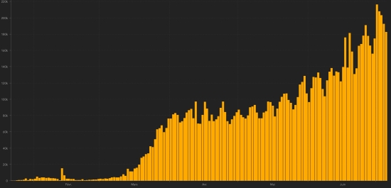 GLOBAL SITUATION : Monday, July 6, 2020, the number of people infected worldwide by the coronavirus Covid-19 since the start of the pandemic (Official source), amounted to 11,471,225 confirmed (+177,487 cases in 24 hours) , the day before: (+200,556). Number of contaminated countries 188 (unchanged) Bulletin from the day before : https://www.haitilibre.com/en/news-31205-haiti-covid-19-daily-report-july-5-2020.html Since the start of the pandemic 6,193,538 people have been cured of Covid-19 worldwide (+114,986 in 24 hours), the day before (+188,500) Since the start of the pandemic 534,787 people have died of Covid-19 worldwide (+3,543 in 24 hours), the day before (+5,753) The number of active cases worldwide (excluding death and recovery) is currently 4,742,900 cases (+58,958) in 24 hours (the day before: +6,303) World Chart: daily confirmed cases