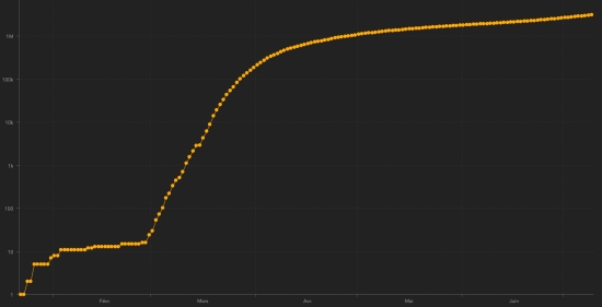 GLOBAL SITUATION : Friday, July 10, 2020, the number of people infected worldwide with the Covid-19 coronavirus since the start of the pandemic (Official source), amounted to 12,287,550 confirmed (+224,687 cases in 24 hours) , the day before: (+211,977). Number of contaminated countries 188 (unchanged) Bulletin from the day before : https://www.haitilibre.com/en/news-31239-haiti-covid-19-daily-report-july-9-2020.html Since the start of the pandemic 6,755,829 people have been cured of Covid-19 worldwide (+150,583 in 24 hours), the day before (+137,818) Since the start of the pandemic 555,324 people have died of Covid-19 worldwide (+5,424 in 24 hours), the day before (+5,178) The number of active cases worldwide (excluding death and recovery) is currently 4,976,397 cases (+68,680) in 24 hours (the day before: +68,981) Average cure rate in the world : 54.98% (+) Average mortality rate in the world : 4.52% (-) Chart: Trend of global spread