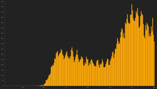 Average cure rate in the world : 63.06% (+) Average death rate in the world : 3.57% (-) TOP 5 countries with the most active cases : 1st - USA: 3,400,242 cases (+26,950 in 24 hours), the day before (+24,610) 2nd - India: 676,900 cases (-544 in 24 hours), the day before (+9,494) 3rd - Brazil: 577,328 cases (-9,658 in 24 hours) 4th - United Kingdom: 280,471 cases (+4,086 in 24 hours) 5th - Russia: 175,278 cases (+6,656 in 24 hours), the day before (-3,706) TOP 5 countries with the most deaths : 1st - USA: 170,052 deaths (+569 in 24 hours), the day before (+1,037) 2nd - Brazil: 107,852 deaths (+620 in 24 hours), the day before (+1,742) 3rd - Mexico: 56,757 deaths (+214 in 24 hours), the day before (+635) 4th - India: 50.921 (+941 in 24 hours), the day before (+944) 5th - United Kingdom 41,361 deaths (no update for 72h) TOP 5 countries with the highest number of healings : (New) 1st - Brazil: 2,655,017 (+32,139 in 24 hours), cure rate 79.07% (-) 2nd - India: 1,919,842 (+57,584 in 24h), cure rate 71.51% (+) 3rd - USA: 1,883,067 (+14,540 in 24h), cure rate 33.92% (=) 4th - Russia: 734,573 (+ 3,129 in 24h), cure rate 79.37% (-) 5th - South Africa: 472,377 (+5,436 in 24h), cure rate 80.43% (+) DIASPORA : United States : Cases since the start of the epidemic : 5,403,361 cases (+42,059 in 24 hours), the day before (+47,848) Healings : 1,833,067 people (+14,540 in 24 hours), the day before (+22,201) National Healing Rate : 33.92% (=) Deaths : 170,052 deaths (+569 in 24 hours), the day before (+1,037) Active cases (less deaths and cures): 3,400,242 cases (+26,950 in 24 hours), the day before (+24,610) Canada : Cases since the start of the epidemic : 124,004 cases (+179 in 24 hours), the day before (+220) Healings : 110,202 people (+269 in 24 hours), the day before (+276) National Healing Rate : 88.87% (+) Death : 9,074 deaths (+2 in 24 hours), the day before (+4) National death rate : 7.32% (-) Active cases : (excluding death and cures) 4,728 cases (-92 in 24 hours), the day before (-60) France : Confirmed cases since the first case : 255,817 (+3,015 in 24h), previous (+3,310) Healings : 83,993 people (+113 in 24 hours), previous (+44) National Healing Rate : 32.83% (-) Deaths : 30,410 deaths (+11 in 24h), previous (+3) Active cases : (excluding death and cures) 141,414 (+2,891 in 24h), previous (+3,000) Latin America and the Caribbean active cases : Brazil : 577,328 cases (-9,658 in 24h) Colombia : 165,799 cases (-1,660 in 24 hours), the day before (-1,867) Peru : 144,298 cases (+13,639 in 24 hours), the day before (-5,549) Argentina : 77,164 (-602 in 24 hours), the day before (-139) Mexico : 41,107 cases (-1,900 in 24 hours), the day before (+1,975) Dominican Republic : 31,951 cases (-800 in 24 hours), the day before (-789) Panama : 25,172 (+110 in 24 hours), the day before (+280) Chile : 16,666 cases (+110 in 24 hours), the day before (-178) Ecuador : 8,360 cases (-6,909 in 24 hours), the day before (+1,066) French Guiana : 7,211 cases (-19 in 24 hours), the day before (+105) Haiti : 2,466 (+18 in 24 hours), the day before: (+48) Bahamas : 1,108 cases (+33), the day before (+111) Cuba : 608 cases (-28 in 24 hours), the day before (+42) Jamaica : 335 cases (+4), the day before (+24) Guadeloupe : 344 cases (unchanged in 48 hours), previous (+79) Martinique : 222 cases (unchanged in 24 hours), the day before (-1 case) HAITI : Epidemiological situation : According to the Ministry of Public Health, 18 new cases of Covid-19 would have been confirmed in Haiti in 24 hours the day before (+48), for a total of 7,897 cases throughout the national territory (41.58% of women and 58.42% ) since the first case (March 19, 2020 https://www.haitilibre.com/en/news-30319-haiti-health-origin-of-the-first-2-cases-of-covid-19-in-haiti.html ). Deaths : unchanged in 24 hours, national total at 196 Healings :: 5,235 people (unchanged in 48h), previous (+112 in 72h) Healing rate : 66.29% (-) Active cases : (less deaths and recoveries) 2,466 (+18 in 24 hours), the day before: (+48) Imported cases : 152 cases since the reopening of airports and +43 since the last report dated July 9 (109) https://www.haitilibre.com/en/news-31348-haiti-flash-152-cases-imported-since-the-reopening-of-airports.html (update not available) Suspected cases investigated since March 19 : 21,561 cases (+217 in 24 hours), previous (+482) Cases tested since the start of the pandemic : 20,999 (+375 in 24 hours as of August 13) People currently hospitalized : (information not available) People in intensive care currently : (information not available) People currently treated at home : (information not available) Cases confirmed by department : West: 5.531 cases (+8), the day before: (+28) Artibonitis: 461 cases (unchanged), the day before: (+2) North: 393 cases (+2), the day before: (+4) Center: 389 cases (+2) South-East: 232 cases (+5), the day before: (+2) South: 214 cases (unchanged), the day before: (+2) North-East: 195 cases (unchanged), the day before: (+2) North-West: 186 cases (unchanged), the day before: (+2) Grand'Anse: 160 cases (+1) Nippes: 136 cases (unchanged), the day before: (+4) Location of cases : West : 5,531 case (+8) Delmas : 1,347 cases (+5), teh day before : (+6) Port-au-Prince : 1,122 (unchanged ), teh day before : (+8) Pétion-ville : 823 cases (unchanged), teh day before : (+5) Tabarre : 671 case (+2), teh day before : (+3) Croix-des-Bouquets : 532 (unchanged), teh day before : (+2) Carrefour : 422 cases (+1), teh day before : (+4) Petit-Goâve : 147 cases (unchanged) Cité Soleil : 92 cases (unchanged) Cabaret : 72 cases (unchanged) Léogâne : 69 cases (unchanged) Kenskoff : 58 cases (unchanged) Archaie : 44 cases (unchanged) Gressier 40 cases (unchanged) Anse à Galet : 35 cases (unchanged) Grand Goâve : 14 cases (unchanged) Cornillon : 13 cases (unchanged) Ganthier : 12 cases (unchanged) Thomazeau : 9 cases (unchanged) Fonds-Verettes : 6 (unchanged) Pointe à Raquette : 3 cases (unchanged) Artibonite : 461 case (unchanged) 