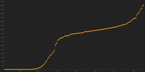 The rebound of the Covid following deconfinement remains very active France : Confirmed cases since first case : 319,766 (+4,982 in 24h), previous (+3,083) Healings : 86,682 people (+243 in 24 hours), previous (+159) National Healing Rate : 27.11% (-) Deaths : 30,638 deaths (+19 in 24h), previous (+29) Active cases : (excluding death and recovery) 202,446 (+4,720 in 24 hours), previous (+2,894) Latin America and the Caribbean active cases : Brazil : 483,095 cases (-35,205 in 24 hours), the day before (+14,432) Peru : 156,462 cases (-6,459 in 24 hours), the day before (-11,232) Colombia : 134,424 (-1,548 in 24h), previous (-1,960) Argentina : 110.944 (+3.064 in 24 hours), the day before (+1.918) Mexico : 39,073 cases (+149 in 24 hours), the day before (-3,035) Dominican Republic : 24,505 cases (-418 in 24 hours), the day before (-861) Panama : 24,560 (-247 in 24h), the day before (-516) Chile : 16,034 cases (-524 in 48h), previous (+412) French Guiana : 7,558 cases (+19 in 24 hours), the day before (+27) Ecuador : 6,015 cases (+473 in 24 hours), the day before (+69) Haiti : 2,182 cases (-17 in 48 hours), previous (+4) Jamaica : 1,761 cases (+213), the day before (+102) Bahamas : 1,425 cases (+59 in 24 hours), the day before (+31) Guadeloupe : 1,156 cases (update not available), the day before (+124) Martinique : 625 cases (+129 in 24 hours), the day before (+19) is one place ahead Cuba : 575 (+15 in 24 hours), the day before (+8) HAITI : Epidemiological situation : NOTE : The Ministry of Public Health, for an unexplained reason, is no longer able to publish on time regularly as before the figures of the situation in Haiti, to be inserted in our 11:00 am general bulletin. In order not to penalize the Haitian diaspora in the world, the 11:00 am bulletin is now published earlier (without the situation in Haiti). A special bulletin will be published for Haiti during the day. Should the situation recover in the future, we will include the situation in Haiti in the general bulletin. [HL] Previous Haiti Special Bulletin : UNITED STATES : Epidemiological situation : United States : Cases since the start of the epidemic : 6,075,650 cases (+44,637 in 24 hours), the day before (+33,849) Healings : 2,202,663 people (+17,838 in 24 hours), the day before (+30,886) National Healing Rate : 36.25% (+) Death : 184,689 deaths (+1,091 in 24 hours), the day before (+530) National death rate : 3.04% (=) Active cases (less deaths and recoveries): 3,688,298 cases (+25,708 in 24 hours), the day before (+2,433) Tests : 78,996,267 people have been tested (+703,946 in 24 hours) the day before (+701,198) USA: Number of daily confirmed cases