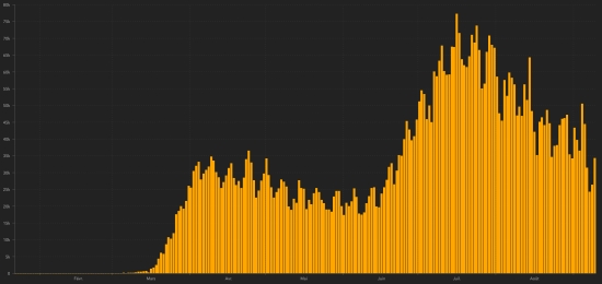 Apart from a few occasional slight increases of 24 hours, the downward trend in the number of new cases of Covid-19 has been continuing for 54 days now. New York State: Cases since the start of the epidemic: 441,154 cases (+576 in 24 hours), the day before (+557) Healings: 75,539 people (+36 in 24 hours), the day before (+32) Deaths: 33,019 deaths (+3 in 24 hours) the day before (+13) Death rate: 7.48% (-) Active cases (less deaths and recoveries): 332,596 cases (+537 in 24 hours), the day before (+511) Tests: 8,976,165 people tested (+63,230 in 24 hours), the day before (+58,865) State of Massachusetts: Cases since the start of the epidemic: 123,143 cases (+181 in 24 hours), the day before (+171) Healings: 107,501 people healed (+1,732, updated every 5 days) Death: 9,146 deaths (+5 in 24 hours), previous (+8) Death rate: 7.43% (=) Active cases (less deaths and cures): 6,496 cases (-1556 in 24 hours), the day before (+163) Tests: 1,890,070 people tested (+11,349 in 24h), previous (+9,442) Florida: Cases since the start of the epidemic (March 1, 2020): 652,259 cases (+2,167 cases in 24 hours), the day before (+1,823) Deaths: 12,110 deaths (+195 in 24 hours), the day before (+44) Death rate: 1.86% (+) Tests: 4,831,248 (+14,375 in 24h), the day before (+15,189) Miami Dade (FL): Cases since the start of the epidemic: 162,433 cases (+407 in 24 hours), the day before (+389) Deaths: 2,740 deaths (+74 in 24 hours), the day before (+8) Death rate: 1.69% (+) QUEBEC: Epidemiological situation: Cases confirmed since the first case (February 27, 2020): 64,056 cases (+180 in 24 hours), the day before (+163) Healing: 56,400 people (+238 in 24 hours), the day before (+202) Death: 5,771 deaths (+1 in 24 hours), the day before (unchanged) Active cases: (excluding death and cures) 1,885 cases (-59 in 24 hours), the day before (-39) Hospitals: 113 people hospitalized (+8 in 24 hours) the day before (unchanged) Intensive care: 14 people (-1 in 24 hours), the day before (-3) In Montreal, epicenter of the pandemic in Quebec where the largest Haitian community is located (nearly 150,000 members): 30,246 cases have been confirmed since the start of the epidemic (+54), previous (+43). TOP 5 of the most contaminated Montreal boroughs: 1 - Montreal North: 2,687 cases (+3 in 72h), the day before (+22) 2 - Mercier – Hochelaga-Maisonneuve: 2,514 cases (+5 in 24 hours), the day before (+10) 3 - Ahuntsic-Cartierville: 2,513 (+3 in 24 hours), the day before (+10) 4 - Côte-des-Neiges – Notre-Dame-de-Grâce: 2,405 cases (+1 in 24 hours), the day before (+14) 5 - Rivière-des-Prairies – Pointe-aux-Trembles: 2,271 cases (+1 in 24h), previous (+15) TOP 5 of the most contaminated regions of Quebec: 1 - Montreal: 30,246 cases (+54 in 24 hours), the day before (+43) 2 - Montérégie: 9,563 cases (+22 in 24 hours), the day before: (+18) 3 - Laval: 6.441 (+7 in 24 hours), the day before: (+27) 4 - Lanaudière: 4.914 (+10 in 24 hours), the day before: (+9) 5 - Laurentians: 4,324 cases (+4 in 24 hours), the day before: (+2) Quebec Province Healing Rate: 88.05% (+) Death rate: 9.01% (-) DOMINICAN REPUBLIC: Epidemiological situation: Cases confirmed since March 1: : 100,937 cases (+806 in 24 hours), the day before (+233). First case (March 1, 2020) https://www.haitilibre.com/en/news-30165-haiti-flash-first-case-of-covid-19-in-the-dominican-republic.html Healings: 74,305 healings (+510 in 24 hours), the day before (+567) Death: 1,914 deaths since March 1 (+25 in 24 hours), the day before +5) active cases: (excluding death and recovery) 24,718 cases (+271 in 24 hours), the day before (-359) Hospitalized people: (info not available) Intensive care: (info not available) Quarantine (home treatment): (info not available) Top 5 of the most infected provinces (active case, less healings and deaths): 1 - National district: 5,295 cases (-54 in 24 hours), the day before (-144) 2 - Santiago: 3,137 (-31 in 48 hours), the day before (-82) 3 - Santo Domingo: 2,817 cases (-51 in 24 hours), the day before (-3) 4 - La Vega: 941 (+28 in 24 hours), the day before (-18) 5 - La Altagracia: 733 (-8 in 24 hours), the day before (-14) Tests (since the 1st case): 403,755 tests (+3,617 in 24 hours), the day before (+2,493) National Healing Rate: 73.62% (-) Mortality rate: 1.90% (+) FRANCE: Epidemiological situation: Confirmed cases since the first case: 377,860 (+8,577 in 24h), previous (+6,544) Hospitalized people: 4,985 (+43 in 24 hours), the day before (+53) Intensive care: 593 people (+25 in 24 hours), the day before (+37) Healings: 88,494 people (+298 in 24 hours), the day before (+390) Deaths: 30,810 deaths (+30 in 24 hours), the day before (+39) Active cases: (excluding death and cures) 259.186 (+8.879 in 24h), The day before (+6.115) France: Number of daily confirmed cases