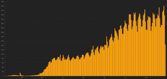 WORLD SITUATION: On Monday, September 14, 2020, the number of people worldwide infected with the Covid-19 coronavirus since the start of the pandemic (Official source), amounted to 29,008,497 (+227,024). Number of contaminated countries 188 (unchanged) Bulletin of the day before: https://www.haitilibre.com/en/news-31790-haiti-diaspora-covid-19-daily-report-september-13-2020.html Since the start of the pandemic 19,627,266 people (+155,174 in 24 hours) have been cured of Covid-19 around the world, the day before (+236,423) Since the start of the pandemic 924,127 people have died of Covid-19 worldwide (+3,537 in 24 hours), the day before (+4,356) The number of active cases in the world (excluding deaths and recoveries) is currently 8,457,104 cases (+68,313 in 24 hours), the day before (+22,131) World: Number of daily confirmed cases