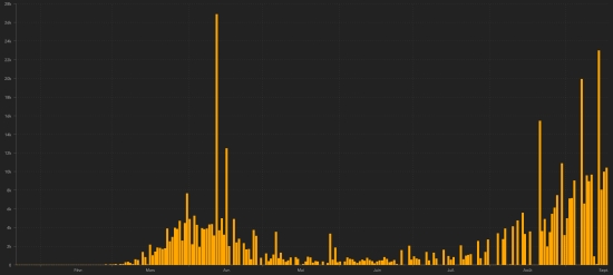 The downtrend has continued since July 16, but more slowly. New York State: Cases since the start of the epidemic: 447,262 cases (+896 in 24 hours), the day before (+652) Healings: 75,962 people (+59 in 24 hours), the day before (+56) Death: 33,070 deaths (+28 in 24 hours) the day before (+4) Death rate: 7.39% (-) Active cases (less deaths and cures): 338,230 cases (+809 in 24 hours), the day before (+592) Tests: 9,621,920 people tested (+91,504 in 24 hours), the day before (+75,087) State of Massachusetts: Cases since the start of the epidemic: 126,128 cases (+429 in 24 hours), the day before (+306) Heals: 109,397 people healed (updated every 5 days) Death: 9,260 deaths (+15 in 24 hours), previous (+20) Death rate: 7.34% (-) Active cases (less deaths and recoveries): 7,471 cases (-486 in 24 hours), the day before (-710) Tests: 3,199,563 people tested (+67,849 in 24h), previous (+55,902) Florida: Cases since the start of the epidemic (March 1, 2020): 674,456 cases (+3,255 cases in 24 hours), the day before (+2,355) Death: 13,086 deaths (+147 in 24 hours), the day before (+152) Death rate: 1.94% (+) Tests: 5,010,973 (+26,950 in 24 hours), the day before (+15,176) Miami Dade (FL): Cases since the start of the epidemic: 165,595 cases (+448 in 24 hours), the day before (+459) Death: 2,977 deaths (+22 in 24 hours), the day before (+32) Death rate: 1.8% (+) QUEBEC: Epidemiological situation: Cases confirmed since the first case (February 27, 2020): 66,356 cases (+499 in 24 hours), the day before (+303) Healing: 58,012 people (+208 in 24 hours), the day before (+176) Death: 5,791 (+3 in 24 hours), the day before (+3) Active cases: (excluding death and recovery) 2,553 cases (+288 in 24 hours), the day before (+124) Hospitals: 136 people hospitalized (+6 in 24 hours) the day before (-3) Intensive care: 29 people (+3 in 24 hours), the day before (+3) In Montreal, epicenter of the pandemic in Quebec where the largest Haitian community is located (nearly 150,000 members): 30,963 cases have been confirmed since the start of the epidemic (+295), previous (+97). TOP 5 of the most contaminated Montreal boroughs: 1 - Montreal North: 2,727 cases (+11 in 24 hours), the day before (+4) 2 - Mercier – Hochelaga-Maisonneuve: 2,564 cases (+18 in 34 hours), the day before (+7) 3 - Ahuntsic-Cartierville: 2,566 (+21 in 24), the day before (+5) 4 - Côte-des-Neiges – Notre-Dame-de-Grâce: 2,455 cases (+27 in 24 hours), the day before (+5) 5 - Rivière-des-Prairies – Pointe-aux-Trembles: 2,318 cases (+15 in 24 hours), the day before (+13) TOP 5 of the most contaminated regions of Quebec: 1 - Montreal: 30,668 cases (+97 in 24 hours), the day before (+39) 2 - Montérégie: 9,799 cases (+35 in 24 hours), the day before: (+15) 3 - Laval: 6,585 (+24 in 24h), the day before: (+18) 4 - Lanaudière: 5,010 (+6 in 24h), the day before: (+6) 5 - Laurentians: 4,420 cases (+18 in 24 hours), the day before: (+13) Province of Quebec Healing Rate: 87.43% (-) Death rate: 8.73% (-) DOMINICAN REPUBLIC: Epidemiological situation: Cases confirmed since March 1: : 106,136 cases (+615 in 24 hours), the day before (+718). First case (March 1, 2020) https://www.haitilibre.com/en/news-30165-haiti-flash-first-case-of-covid-19-in-the-dominican-republic.html Heals: 79,363 healings (+472 in 24h), the day before (+504) Deaths: 2,022 deaths since March 1 (+13 in 24 hours), the day before +11) active cases: (excluding death and recovery) 24,751 cases (+130 in 24 hours), the day before (+203) Hospital occupancy rate: Covid-19 beds: 26% (=) Intensive care beds: 40% (=) Beds with assisted ventilation: 28% (=) Top 5 of the most infected provinces (active case, less healings and deaths): 1 - National district: 5,107 cases (-13 in 24 hours), the day before (-19) 2 - Santiago: 2,733 (+24 in 48 hours), the day before (-43) 3 - Santo Domingo: 2,836 cases (+20 in 24 hours), the day before (+8) 4 - La Vega: 942 (-11 in 24 hours), the day before (unchanged) 5 - La Altagracia: 679 (+20 in 24 hours), the day before (-8) Tests (since the 1st case): 433,848 tests (+4.425 in 24 hours), the day before (+3.921) National Healing Rate: 74.77% (+) Death rate: 1.91% (+) FRANCE: Epidemiological situation: Confirmed cases since the first case: 449,240 (+10,593 in 24h), previous (+9,784) France: Number of daily confirmed cases