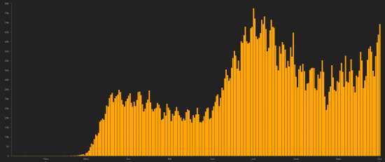 Case since the first case (March 9, 2020): 8,050,147 cases (+69,575 in 24h), previous (+217,765 in 72h)