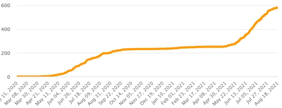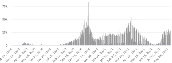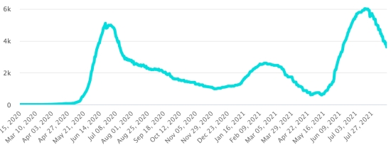 Vaccination: 4.84 billion doses of vaccine injected (+40 million doses injected in 24 hours updated August 18, 2021 latest data available). HAITI: Epidemiological situation: According to the Ministry of Public Health, 31 new cases in 24 hours of Covid-19 and its variants were confirmed in Haiti on August 12, 2021 (latest partial data available) for a total of 20,689 cases confirmed throughout the national territory (46.1% women and 53.9% men), since the first case (March 19, 2020 https://www.haitilibre.com/en/news-30319-haiti-health-origin-of-the-first-2-cases-of-covid-19-in-haiti.html). Previous update (73 cases on August 10-11). 3rd wave: The total for the 3rd wave (beginning of May 10, 2021) stands at 7,383 confirmed cases and 311 deaths. . Updated August 12, 2021. Healings: 16,498 (+83 in 24h) Healing rate: 79.74% (+) Deaths: 582 deaths +2 (+1 West +1 Artibonite) Mortality rate: 2.81% (+) Haiti: Trend in deaths:
