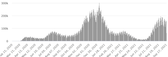 3rd wave: The total for the 3rd wave (beginning of May 10, 2021) stands at 8,079 confirmed cases and 334 deaths. . Updated September 15, 2021. Cases tested since the start of the pandemic: 116,433 115,741 cases (+692 in 48 hours) update September 15, 2021 latest data available. Note that the very low number of people tested does not statistically make it possible to make a representative estimate of the active cases of Covid-19 in Haiti. By comparison, the neighboring Republic has carried out more than 2 million tests on its population since the start of the epidemic. Most affected municipalities in the West (2021): Delmas: 1.991 (+24); Pétion ville 1,717 (+5); Port-au-Prince 1,093 (+3); Tabarre 855 (+2); Croix-des-Bouquets 870 (+8) Confirmed cases by department (2021): West: 7.601 (2020: 6.945) North: 478 (2020: 677) Center: 684 (2020: 508) Artibonite: 572 (2020: 593) Northeast: 286 (2020: 314) Southeast: 353 (2020: 274) South: 496 (2020: 262) Northwest: 263 (2020: 229) Grand'Anse: 403 (2020: 176) Nippes: 150 (2020: 149) Cumulative deaths by department (2021): West: 200 (2020: 104) North: 34 (2020: 34) Center: 26 (2020: 13) Artibonite: 22 (2020: 39) Northeast: 5 (2020: 6) South: 32 (2020: 6) Southeast: 11 (2020: 9) Northwest: 12 (2020: 12) Grand'Anse: 5 (2020: 13) Nippes: 17 (2020: 5) Distribution of deaths by age (since the start of the epidemic): 0-9 years: 13 10-19 years: 6 20-29 years: 22 30-39 years: 37 40-49 years: 64 (+2) 50-59 years: 104 (+2) 60-69 years: 134 (+4) 70-79 years: 135 80 years and over: 90 Vaccination: 52,050 (+1,767 in 4 days) doses of “Spikevax” vaccine (official name) from the MODERNA Laboratory have been injected in total since July 16, 2021, date of the first injection. 15,002 people are fully vaccinated (2 doses). Update 13 September August 2021, latest data available. List of 68 vaccination centers open in Haiti (and hours) by department: (updated September 13, 2021) DIASPORA: Epidemiological situation: USA: * Case since the first case (March 9, 2020): 42,866,805 cases (+66,898 in 24 hours), the day before (+165,853) * Healings: 32,483,226 healings (+49,060 in 24h), the day before (+86,440) National Healing Rate: 75.77% (-) * Death: 691,562 deaths (+848 in 24 hours), the day before (+2,228) National death rate: 1.61% (=) * Active cases (less deaths and recoveries): 9,692,017 cases (+16,990 in 24 hours), the day before (+77,185) * Tests: 618,987,057 people tested since the first case USA: Number of daily confirmed cases :