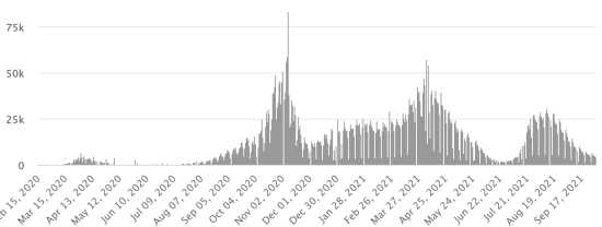 Vaccination: 394.69 million doses of vaccine injected since December 14, 2020, the date of the first injection in the United States (930,000 doses injected, in 24 hours). Update 2 October 2021 (latest data available). DOMINICAN REPUBLIC: Cases confirmed since March 1, 2020: 360,257 cases (+660 in 24 hours) the day before (+550). First case (March 1, 2020) https://www.haitilibre.com/en/news-30165-haiti-flash-first-case-of-covid-19-in-the-dominican-republic.html Healings: 350,098 healings since March 1 (+330 in 24 hours), the day before (+364) National Healing Rate: 97.18% (-) Death: 4,055 deaths (+6 in 24 hours), the day before (+3) Mortality rate: 1.12% (=) Positivity rate over 4 epidemiological weeks: 7.4% (+) Active cases: (excluding death and recovery) 6,104 cases (+324 in 24 hours) the day before (+183) TOP 5 provinces with the most new cases in the last 24 hours: Santiago: +144 cases (+) Santo Domingo: +83 cases (-) National District: +68 cases (-) San Crístobal: +48 cases La Vega: 44 cases Dominican Republic: Number of daily confirmed cases:
