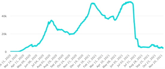 Vaccination: 454.45 million doses of vaccine injected since December 14, 2020, the date of the first injection in the United States (1.75 million doses injected in 24 hours). Update 24 November 2021 (last available data). DOMINICAN REPUBLIC: Cases confirmed since March 1, 2020: 406,021 cases (+508 in 24 hours) the day before (+759). First case (March 1, 2020) https://www.haitilibre.com/en/news-30165-haiti-flash-first-case-of-covid-19-in-the-dominican-republic.html Healings: 397,873 healings since March 1 (+890 in 24 hours), the day before (+380) National Healing Rate: 97.99% (+) Death: 4,202 deaths (+5 in 24 hours), the day before (+2) Death rate: 1.03% (=) Positivity rate over 4 epidemiological weeks: 7.95% (-) Active cases: (excluding death and recovery) 3,946 cases (-387 in 24 hours) the day before (+377) TOP 5 provinces with the most new cases in the last 24 hours: Nacional District: +98 cases (-) Santo Domingo: +97 cases (-) Santiago: +72 cases (-) Espaillat: +44 cases (-) Valverde: +37 cases (-) Dominican Republic: Trend of active cases: (less healings and deaths)