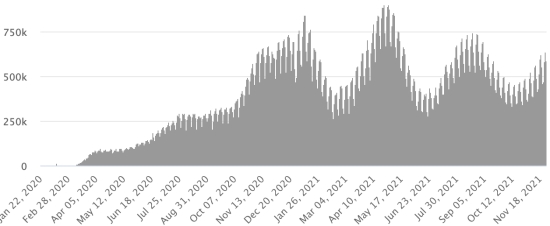 Tests (since the 1st case): 2,438,353 tests (+9,547 in 24 hours), the day before (+13,040) Vaccination: 13.76 million doses of vaccine injected since February 16, 2021, date of the first injection in the Dominican Republic (+20,000 doses injected in 24 hours). Update 25 November 2021 (last available data). QUEBEC: Confirmed cases since the first case (February 27, 2020): 444,585 (+1,037 in 24h), previous (+902) Healings: 425,690 people (+760 in 24 hours), previous (+1,885) Province of Quebec Healing Rate: 95.75% (-) Death: 11,571 deaths (+0 in 24 hours), previous (+5) Mortality rate: 2.60% (=) Active cases: (excluding death and recovery) 7,324 cases (+277 in 24 hours), previous (+344) Test: 13,449,106 people tested since the first case (+31,175 in 24 hours) Vaccination: 13,521,416 million doses of vaccine injected since December 16, 2020 date of the first injection (+19,266 in 24 hours), latest data available - MSSS dated November 26, 2021) FRANCE: * Cases confirmed since the first case (January 24, 2020): 7,551,182 cases (+ 34,436 cases in 24 hours), the day before (+ 33,464) * Healings: 7,090,100 healings (+9.545 in 24 hours), the day before (+8.874) National Healing Rate: 93.89% (-) Deaths: 118,837 deaths (+60 in 24h) National death rate: 1.57% (-) * Active cases: (excluding death and cures) 342,245 cases (+24,831 in 24 hours), the day before (+24,547) * Tests: 162,981,031 people tested since the first case. Update November 26, 2021. Latest data available. France: Trend of active cases: (less healings and deaths)