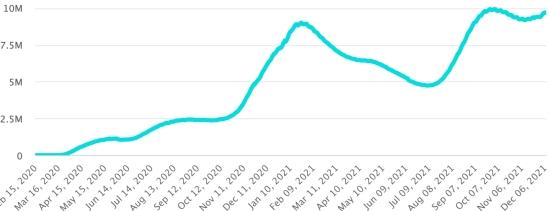Test: 13,777,706 people tested since the first case (25,137 in 24 hours) Vaccination: 13,798,356 million doses of vaccine injected since December 16, 2020 date of the first injection (+20,776 in 24 hours), latest data available - MSSS as of December 7, 2021) FRANCE: * Cases confirmed since the first case (January 24, 2020): 7,987,591 cases (+59,019 cases in 24 hours), the day before (+11,308) * Healings: 7,211,231 healings (-192 correction), the day before (+40,043) National Healing Rate: 90.28% (-) Death: 119,899 deaths (+364 in 48 hours), the day before (not available) National death rate: 1.50% (=) * Active cases: (excluding death and cures) 656,461 (+58,847 in 24 hours), the day before (-28,735) France: Trend of active cases: (less healings and deaths)