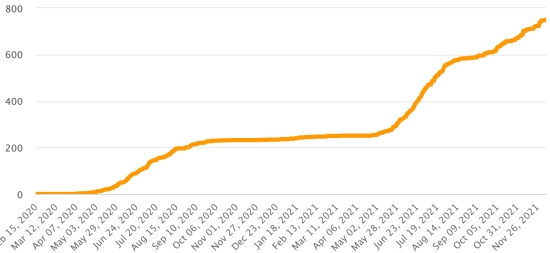 Vaccination: 8.28 billion doses of vaccine injected (+40 million doses injected in 24 hours. Update December 7, 2021 (latest data available). HAITI: Epidemiological situation: According to the Ministry of Public Health, +53 new cases in 48 of Covid-19 and its variants were confirmed in Haiti on December 3 and 4, 2021 (latest data partial available) for a total of 25,691 cases confirmed throughout the national territory (47.5% of women and 52.5% of men), since the first case (March 19, 2020 https://www.haitilibre.com/en/news-30319-haiti-health-origin-of-the-first-2-cases-of-covid-19-in-haiti.html). Previous update (+60 cases on December 2, 2021). Healings: 21,746 (+139 in 48h) Healing rate: 84.64% (-) Deaths: 754 deaths +4 in 48 hours (West +1, Center +3) Mortality rate: 2.93% (+) Haiti: Trend in deaths: