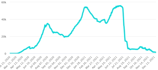 Vaccination: 496.24 million doses of vaccine injected since December 14, 2020, the date of the first injection in the United States (1.14 million doses injected in 24 hours). Update 20 December 2021 (last available data). DOMINICAN REPUBLIC: Cases confirmed since March 1, 2020: 411,883 cases (+162 in 24 hours) the day before (+272). First case (March 1, 2020) https://www.haitilibre.com/en/news-30165-haiti-flash-first-case-of-covid-19-in-the-dominican-republic.html Healings: 406,356 healings since March 1 (+315 in 24 hours), the day before (+234) National Healing Rate: 98.65% (+) Death: 4,223 deaths (+0 in 24 hours), the day before (+0) Death rate: 1.02% (=) Positivity rate over 4 epidemiological weeks: 4.74% (-) Active cases: (excluding death and recovery) 1,304 cases (-153 in 24 hours) the day before (+38) TOP 5 provinces with the most new cases in the last 24 hours: Santiago: +39 cases (-) Santo Domingo: +25 cases (-) Nacional District: +20 cases (-) Valverde: +19 cases Puerto Plata; +10 cases Dominican Republic: Trend of active cases: (less healings and deaths)