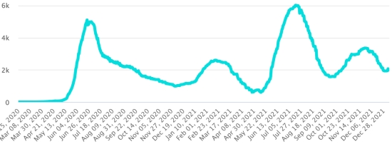 Total of the 5th wave (start December 27, 2021) amounts to 514 confirmed cases and 14 deaths