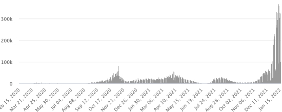 Vaccination: 9.71 billion doses of vaccine injected (+30 million doses injected in 24 hours. Updated January 17, 2022 (latest data available). HAITI: Epidemiological situation: According to the Ministry of Public Health, +200 new cases in 24 hours of Covid-19 and its variants were confirmed in Haiti on January 13, 2022 (latest partial data available ) for a total of 27,819 confirmed cases throughout the national territory (48.2% women and 51.8% men), since the first case (March 19, 2020 https://www.haitilibre.com/en/news-30319-haiti-health-origin-of-the-first-2-cases-of-covid-19-in-haiti.html ). Previous update (+129 cases on January 12, 2022). Healings: 24,057 (+58 in 24h) Cure rate: 86.47% (-) Deaths: 780 deaths +0 since January 7, 2022 (last data available) Mortality rate: 2.80% (-) 5th Wave (Omicron Dominant): Total of the 5th wave (starting December 27, 2021) amounts to 1,824 confirmed cases and 14 deaths Haiti: Active Cases Trend: (less recoveries and deaths)