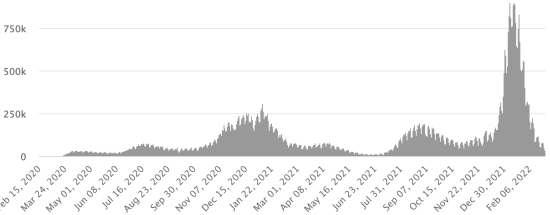 Test: 16,703,680 people tested since the first case (+45,000 in 72 hours) Vaccination: 18,422,302 doses of vaccine injected since December 14, 2020, date of the first injection (+40,040 doses in 72 hours), latest data available - MSSS as of February 28, 2022) FRANCE: *Confirmed cases since the first case (January 24, 2020): 22,702,815 cases (+56,083 cases in 24 hours), previous (+42,600) *Healings: 20,901,272 healings (+280,960 in 24h), previous (+45,925) National Cure Rate: 92.06% (=) Deaths: 138,367 deaths (+232 in 24 hours), previous (+76) Death rate: 0.60% (=) Active Cases: 1,663,176 (-221,784 in 24h), previous (-3,401) Test: 246,629,975 (last data available February 27, 2022) France: Trend of active cases: (minus recoveries and deaths)