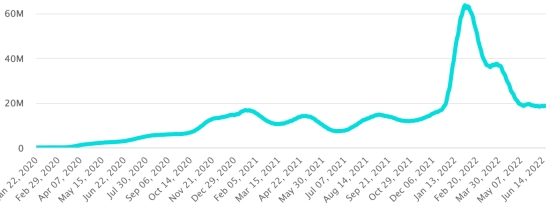 GLOBAL SITUATION 2019-2022: Epidemiological situation: Sunday June 19, 2022 the number of people infected worldwide with the Covid-19 coronavirus and its variants since the start of the pandemic (March 11, 2020) amounts to 544,115,140 cases (+344,664 in 24 hours ), the day before (+559.808) Number of infected countries: 228 *Healings: 519,334,783 people have been cured of Covid-19 worldwide (+396,061 in 24 hours), the day before (+517,809) *Deaths: 6,340,487 people have died of Covid-19 worldwide since the start of the pandemic (+690 in 24 hours), the day before (+1,432) *Active cases (minus deaths and recoveries) in the world is currently 18,439,870 cases (-52,087 in 24 hours), the day before (+40,567) World healing rate: 95.44% (+) Death rate in the world: 1.16% (=) World: Active cases trend: (minus recoveries and deaths)