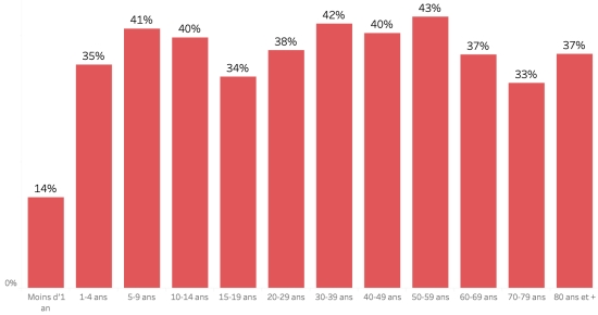 Distribution and deviations of suspected cases, total since October 3 (in 24 hours): Less than 1 year: +349 (+4) 1-4 years: 3,790 cases (-19)** 5-9 years: 2,764 cases (+20) 10-14 years old: 1,338 cases (+5) 15-19 years old: 986 cases (+6) 20-29 years old: 2,865 cases (+20) 30-39 years old: 2,732 cases (+16) 40-49 years old: 1,859 cases (+11) 50-59 years old: 1,319 cases (+5) 60-69 years old: 832 cases (+3) 70-79 years old: 422 cases (+0) 80 and + 73 cases (+1) ** MSPP fix Men: 57.55% men (-); Women 42.45% (+) Positivity rate by age segment: