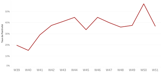 December 26, 2022: (latest data available) Data calculated since the first confirmed case (October 3rd, 2022) Total suspected cases: 19,940 cases +348 (1.77%) in 24 hours (previous: +116 in 24 hours) Total confirmed cases: 1,427 unchanged cases (%) in 24 hours, (no test carried out for 3 days) Total suspected cases hospitalized: 17,086 cases +318 (+1.89%) in 24 hours, (previous +79 in 24 hours) Total deaths: 371 deaths (247 institutional and 124 community) +8 deaths (2.20%) in 24 hours, (previous: +1 death in 24 hours). Partial assessment of cholera in Haiti according to data from the Department of Epidemiology, Laboratories and Research of the Ministry of Public Health Weekly positivity rate: