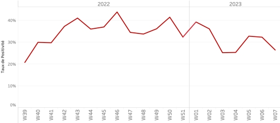 February 18, 2023: (latest data available) Data calculated since the first confirmed case (October 3, 2022) Total suspected cases: 33,294 cases +443 (+1.34%), previous +710 Total confirmed cases: 2,367 cases +4 (%), previous +47 Total suspected and confirmed hospitalized cases: 28,525 cases +157 (+0.55%), previous +664 Total deaths: 594* deaths ((389 institutional (+0) and 205 community (+0)) +0 (%), previous: +0 *The Ministry has not updated this information for 4 days Partial assessment of cholera in Haiti according to data from the Department of Epidemiology, Laboratories and Research of the Ministry of Public Health and Population (MSPP). Weekly positivity rate: