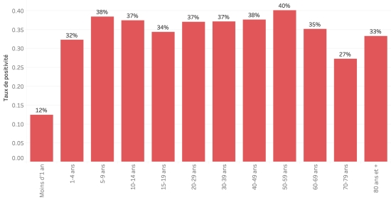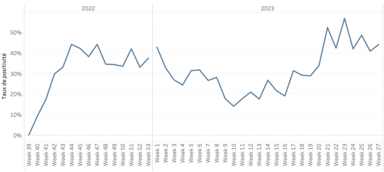 Number of tests carried out: 9,810 +38 in 24h, previous +0 in 24h Positivity rate: 35.71%, previous 35.72% Weekly evolution of the positivity rate (week 27):