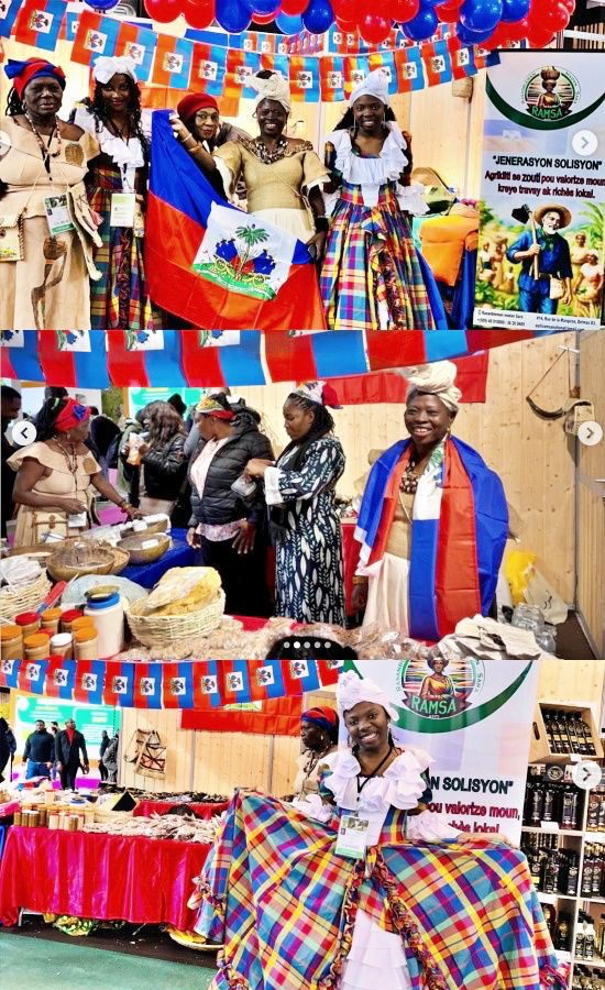 Members of Rasanbleman Madan Sara Ayiti (RAMSA) are representing Haiti at the 62nd International Agricultural Show 2026 (February 21 to March 1st, 2026), marking a historic participation for our country in this event. On this occasion, the Haitian Ambassador to Paris, Louino Volcy, and the Acting Consul, Jean Jocelyn Petit, commended the remarkable commitment of these women entrepreneurs, key players in the agricultural trade in Haiti, for their courage and determination. Ambassador Volcy praised this historic participation, noting that since February 21st, these women have been representing Haiti, its resilience, and its courage, allowing the French and international public, as well as the Haitian community in France, to discover or rediscover our food products, our cuisine, and our agricultural products. "Through your participation, you will convey the message that our country, despite the current crisis, remains a nation that stands strong and will rise again," he declared before paying tribute to the "Madan Sara" the women who, for generations, have connected the countryside to the cities, the provinces to the capital. "It is you who buy from the farmers, our peasants, who supply the markets, who keep the economic life of our country flowing," added the Haitian Ambassador. It should be noted that Haiti is presenting its products at the International Agricultural Show for the first time. This participation was made possible thanks to the support of Haitian institutions that facilitated the delegation’s arrival. The Rasanbleman Madan Sara Ayiti (RAMSA) is showcasing the country’s agricultural and artisanal products.