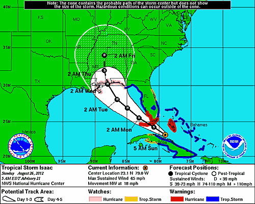 This morning at 6:00 the National Meteorological Centre (CNM) informs that ISAAC continues more rapidly its trajectory north-east on Cuba. Its center has therefore, for the moment no direct effect on Haiti and the Dominican Republic. However, it indicates that heavy rain, gusts of wind and thunderstorms associated with convective cloud masses, intense and dangerous forming the peripheral band of the storm are however always possible across the country tonight. An improvement of the situation is expected for tomorrow morning ISAAC is situated this morning at 6h00 at 3.1N 79.0W or between the Bahamas and Cuba, 344km east of Havana, 275km south-west of Nassau, Bahamas, 322km south-east of Miami. It moves at a speed of 30km/h towards Northwest. Maximum winds currently blowing 100km/h with gusting well above, and the area of influence is of 335km around its center. The red level is maintained in Haiti. The SPGRD together with SEMANAH still maintains a ban on all maritime activities on the southern coast, north of Haiti and the Gulf of Gonâve until further notice. The CNM together with the SPGRD and the DPC asks the population of risk areas to remain vigilant and strictly implement the safety instructions.