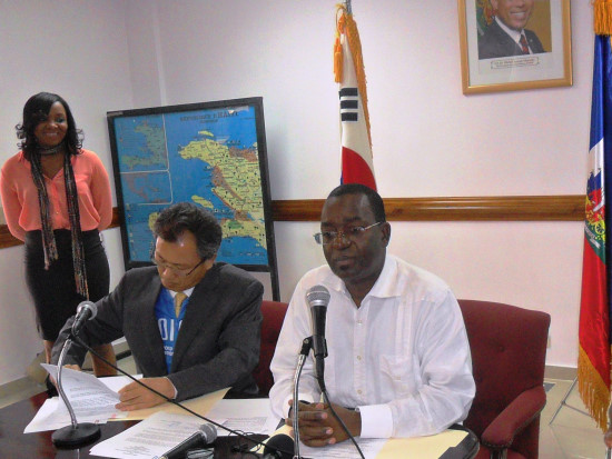 Friday was signed a memorandum of agreement for a donation of 2 million U.S. dollars for the purchase of 50 school bus on a two-year period between the Haitian Government, represented by Wilson Laleau the Minister of Economy and Finance, accompanied by Castro Arboite Director of the school bus company "Dignité" and of a representative of the Ministry of Planning and External Cooperation and the Government of South Korea, represented by Mr. Sae Chul OH, Chief Representative of KOICA in Haiti, accompanied by a south Korean delegation.
